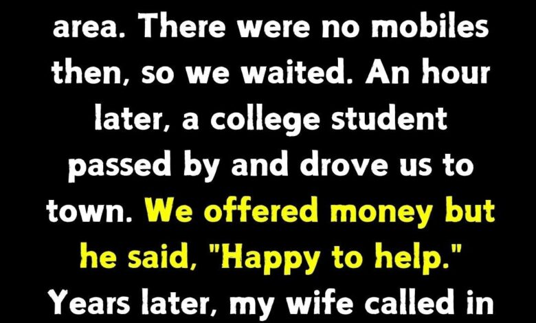 A married couple’s car broke down on a remote road at 2 a.m. after leaving a party—before the era of mobile phones. Stranded and anxious, they were eventually helped by a polite college student who drove them to safety and refused payment, saying he was “happy to help.”