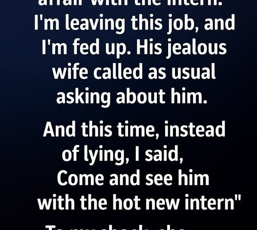 One afternoon, his wife called—sharp, suspicious, same as always. She grilled me: “Is he there? Who’s he with?” Usually, I’d smooth it over with polite lies. But that day, exhaustion won. I said, calm as I could, “Why don’t you come see for yourself? He’s right here—with the intern.”