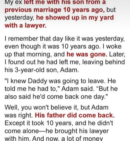 “No,” Adam interrupted. “You don’t get to show up after ten years and act like you care. You were supposed to be my dad. But you weren’t.”