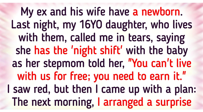 My ex-husband and his wife have a newborn. Last night, my 16YO daughter, who lives with them, called me in tears, saying she has the ‘night shift’ with the baby as her stepmom told her, “You can’t live with us for free; you need to earn it.” I saw red, but then I came up with a plan: The next morning, I arranged a surprise visit from CPS (Child Protective Services).