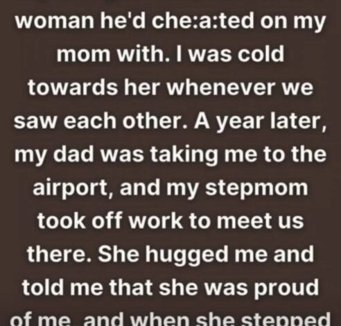 with a care package. She hugged me, told me how proud she was, and I noticed tears in her eyes. In that moment, I realized she wasn’t a bad person, even if she and my dad had made mistakes. From then on, our relationship changed for the better—today, I consider her like a second mom.