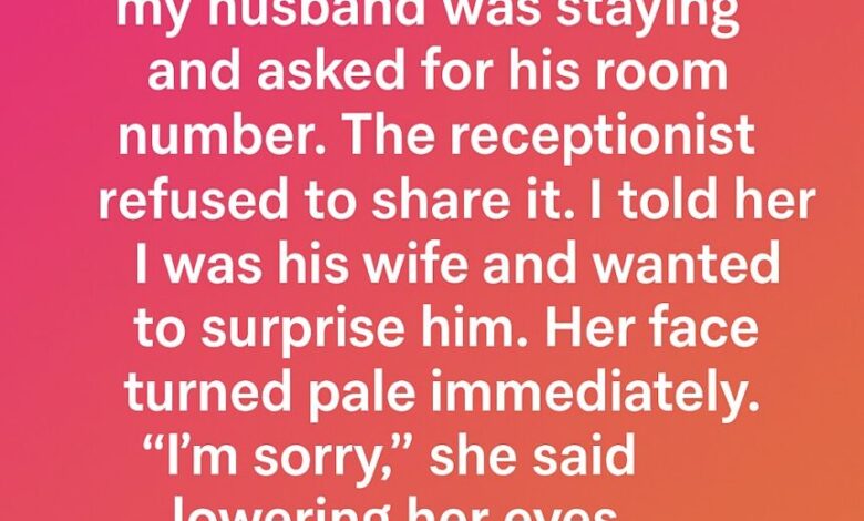 I walked into the hotel determined to surprise my husband. I asked the receptionist for his room number, smiling as I whispered, “I’m his wife. I wanted to surprise him.”