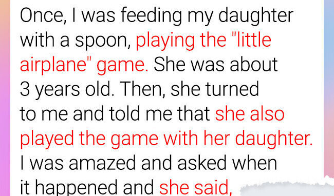 Once, I was feeding my daughter with a spoon, playing our favorite “little airplane” game. She was about three years old then, her eyes sparkling with joy as she giggled each time the spoon “flew” to her mouth. Suddenly, she turned to me with a thoughtful smile and said, “Mom, I played the little airplane game with my daughter too.”
