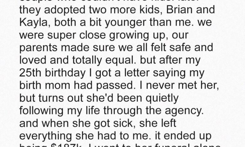 When 25-year-old Taylor inherits $187K from the birth mother she never met, she expects support from her adoptive family. But when she returns home after the funeral, she discovers a nasty surprise waiting for her.