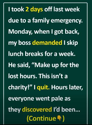 Last week, I took two days off because of a serious family emergency. It wasn’t a vacation or something optional — it was something I simply had to handle. When Monday came and I returned to work, I expected maybe a quick check-in or at least some understanding.
