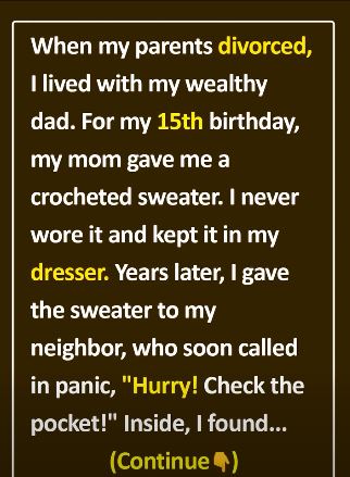 On my 15th birthday, she handed me a gift she had made herself—a crocheted sweater. It was simple and clearly homemade. Compared to the brand-name clothes my friends wore, it felt embarrassing. I mumbled a quick “thanks,” shoved it in my dresser, and never wore it.