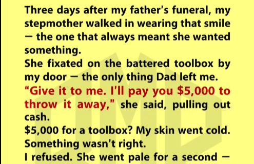 When my father passed away, he left me one thing: a rusty, locked toolbox. Days later, my stepmother April showed up with a smile that always meant trouble — and offered me $5,000 if I would throw the box away. I wondered why she’d pay me to get rid of something she claimed was worthless.