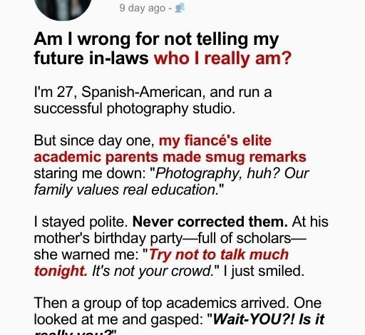 As a 27-year-old Spanish-American running a successful photography studio, I faced smug remarks from my fiancé Jonathan’s elite academic parents, who valued “real education” over my work. At his mother’s birthday party, filled with scholars, she warned me to stay quiet, assuming I didn’t fit in. But Dr. Irene Bell, a sociologist, recognized me as the photographer behind the award-winning “Faces of Resilience” series, featured in academic journals and a UN exhibit. My photos, especially one of an Afghan mother, reshaped trauma studies. Jonathan’s mother, stunned, hadn’t known my achievements. I’d never bragged, despite their dismissive comments about