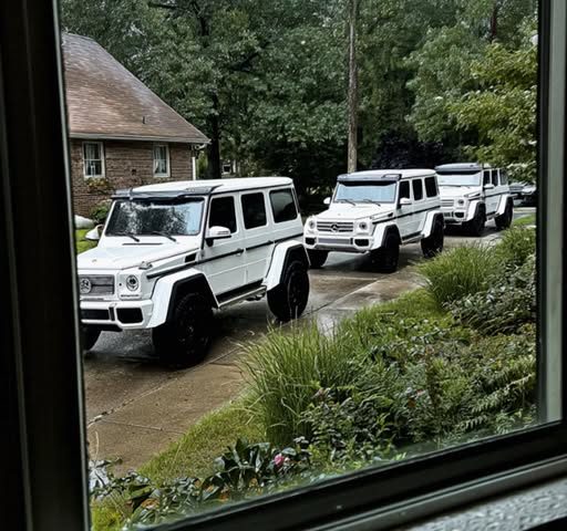 I peeked through the blinds, heart climbing into my throat like it was trying to escape. Three white SUVs gleamed like teeth on the curb. They looked expensive. Really expensive.