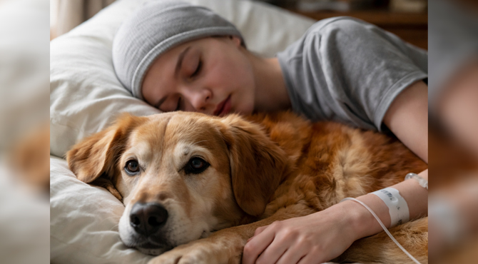 The dog—an old golden mutt named Charlie—was her constant companion. He followed her everywhere, slept beside her bed, and rested his head on her knees during the long afternoons when she was too weak to move.