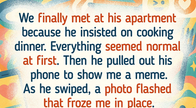 We finally met at his apartment because he insisted on cooking dinner. Everything seemed normal at first — good conversation, good food. Then he pulled out his phone to show me a meme. As he swiped, a photo flashed that froze me in place. It was a picture of me crying in my car from months ago — something I thought I’d experienced alone. I asked him where he got it. He didn’t even flinch. “Oh, I’ve been following you longer than you’ve known me.”