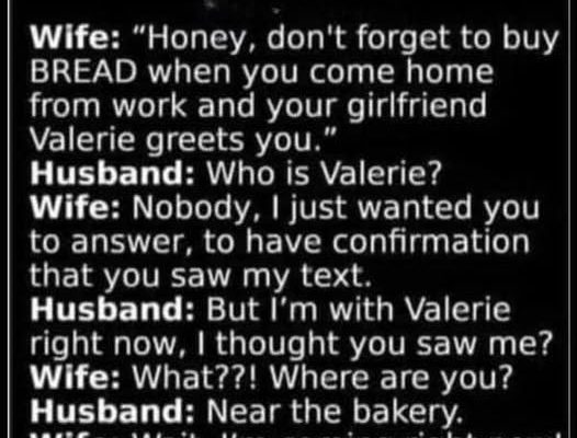 A wife tried to get her husband’s attention by joking in a text that he was with “another woman named Valerie.” To her shock, he replied that yes, he was with Valerie—near her favorite bakery. Panicked, she rushed there, searching frantically, only to find no one.