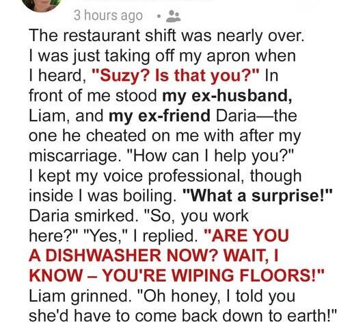 After my divorce, my ex-husband Liam and my ex-best friend Daria flaunted their new life together. It hurt, but I rebuilt mine—opened a restaurant, and turned it into a success.