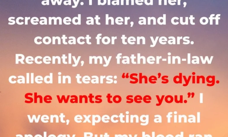 But my blood ran cold when I saw her—not frail, not repentant, but smiling gently, holding a small photo album. She whispered, “I never wanted you to blame me. I wanted you to have this.”
