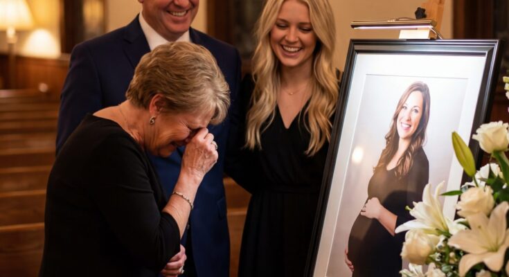I entered St. Mark’s Funeral Home with my fists clenched so tightly my wedding band pressed painfully into my skin. Emily Carter should have been choosing crib sheets and nursery paint, not resting in a gleaming mahogany casket, her eight-month belly still visibly round beneath the satin lining. I kept telling myself I would wake up from the call two nights earlier: “Mrs. Carter, there’s been an accident.”
