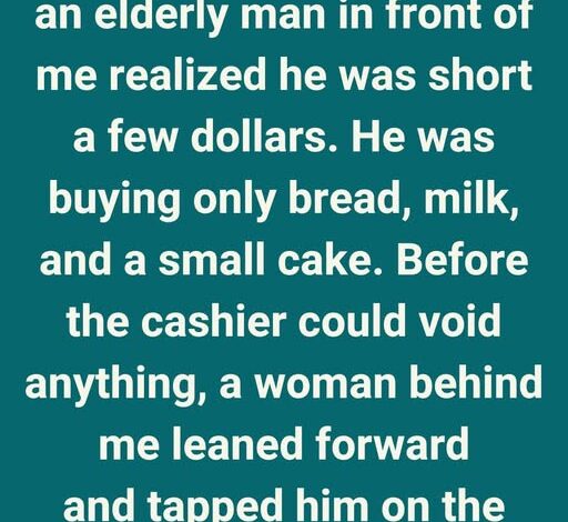In front of me stood an elderly man holding only three things: a loaf of bread, a carton of milk, and a small pink-edged birthday cake. When the cashier read the total, he checked his pockets, his wallet, and finally let out a soft, defeated sigh.