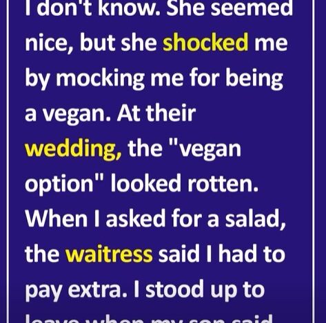 Still, I went for my son. At the reception, there was no assigned seating, so I sat at a table marked “vegan option.” When the food arrived, I was shocked — the vegetables looked spoiled. I asked for a simple salad, but the waitress said I’d have to pay extra because only one vegetarian meal had been ordered.