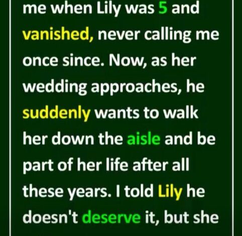 Now, Lily’s wedding is just around the corner. She’s so excited, and I am so incredibly proud of her. But out of nowhere, my ex-husband has reappeared. He wants to walk her down the aisle and be a father to her again, as if he was never gone.