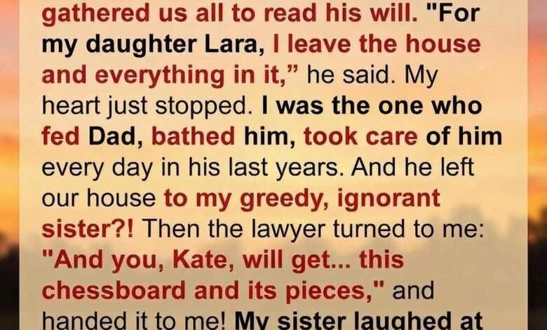 “And for Kate…” The lawyer handed me a wooden chessboard. “This, and its pieces.”