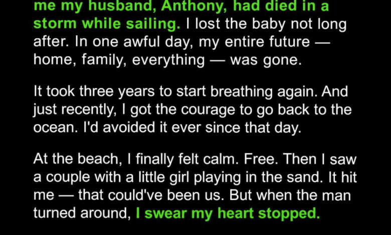 Three years ago, I lost my husband Anthony in a storm at sea. I buried him in my heart, even losing our unborn child in grief.