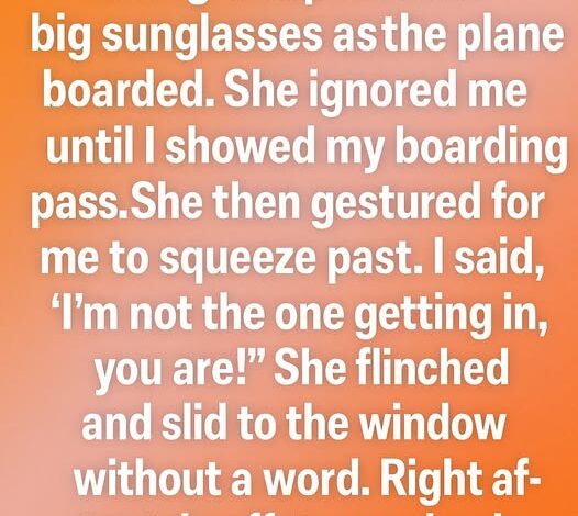 After takeoff, I felt a light tap on my elbow. I turned, expecting irritation or another silent demand. Instead, she’d removed her sunglasses. Her eyes looked exhausted — not angry, just heavy.
