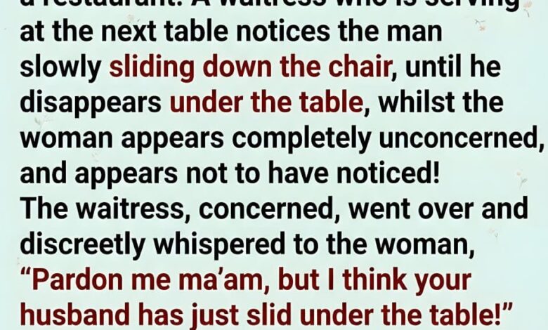 The waitress noticed something strange—the man slowly slid down his chair and disappeared under the table, while the woman stayed completely calm.