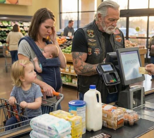 At the grocery store, I was exhausted and broke. My daughter was melting down over a toy, my toddler was screaming, and my card barely covered $127.43 in essentials. When I realized I’d forgotten milk—and didn’t have $4.29 left—I accepted help from an older biker who quietly paid and wished me a safe drive.