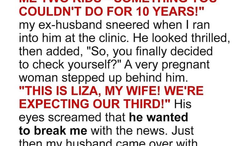 As a nurse calls her in for her first ultrasound, she walks away with her husband, finally at peace. Weeks later, she learns that DNA tests confirmed none of the children were her ex’s. His life collapses under the weight of his own cruelty, while she prepares joyfully for motherhood, realizing she was never the problem.