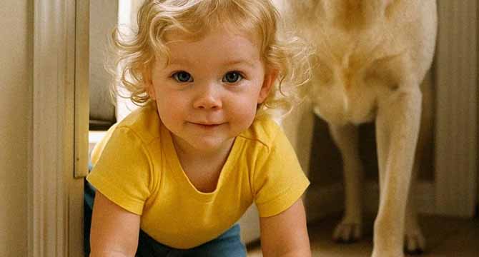 She didn’t knock. She didn’t call out. She crawled through Scout’s doggy door like she’d done it a hundred times before, brushing dirt off her knees as she stood up.