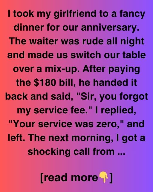 For our anniversary, I took my girlfriend, Sara, to a fancy restaurant, but the waiter, Brandon, was rude, forcing us to switch tables due to a booking error. After paying the $180 bill, he demanded a service fee, which I refused, citing his poor service. The next morning, the manager, Raj, called, alleging Brandon claimed I harassed him. I explained Brandon’s dismissive attitude and the table mix-up. Raj invited me to discuss further, revealing Brandon’s history of complaints and unauthorized tip demands. Surprisingly, Raj offered me a consulting gig to revamp the restaurant’s image, which I accepted, leading to a one-month contract. Brandon was later fired for