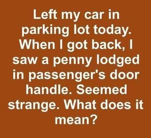 You walk back to your car and notice something strange—a penny wedged tightly into the passenger-side door handle. It looks harmless, maybe a prank. But it could be a warning sign of a theft attempt.
