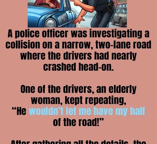 With a frustrated sigh, the man turned away from his wrecked vehicle and replied, “Officer, I would have gladly given her half the road—if only she had decided which half she wanted!”