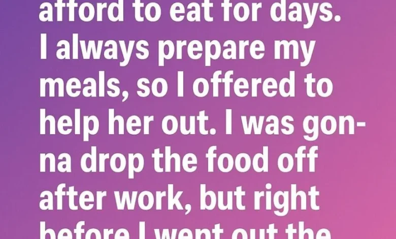 I meal prep every week, so without hesitation, I offered to bring her some food after work. I packed everything carefully—containers stacked neatly, portions thought through—hoping it might bring her a little comfort, or at least ease the worry in her voice.