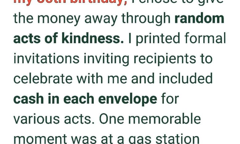 As the author approached their 50th birthday, they decided to do something different: instead of celebrating themselves, they would celebrate others. They prepared fifty envelopes with cash and invitations, planning fifty random acts of kindness.