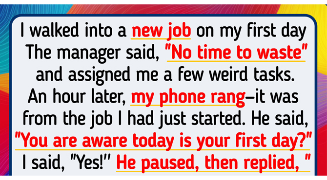 I walked into a new job on my first day and introduced myself to the manager. He said, “No time to waste” and assigned me a few weird tasks, so I started on them. I had been working for an hour when my phone rang—it was from the job I had just started.