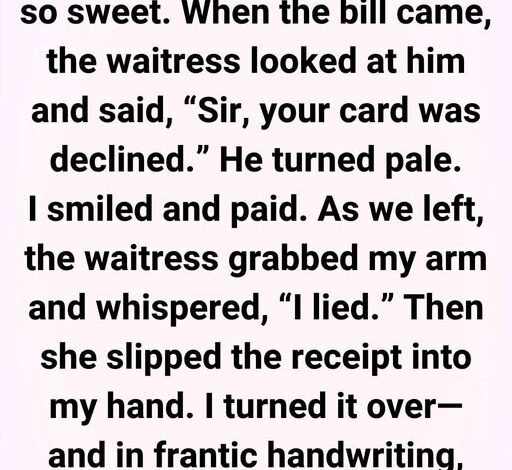 The restaurant was warm and dimly lit, the kind meant to feel romantic. When the bill arrived, the waitress leaned in and whispered, “Sir… I’m so sorry. Your card was declined.”