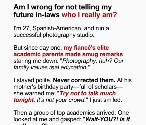 As a 27-year-old Spanish-American running a successful photography studio, I faced smug remarks from my fiancé Jonathan’s elite academic parents, who valued “real education” over my work. At his mother’s birthday party, filled with scholars, she warned me to stay quiet, assuming I didn’t fit in. But Dr. Irene Bell, a sociologist, recognized me as the photographer behind the award-winning “Faces of Resilience” series, featured in academic journals and a UN exhibit. My photos, especially one of an Afghan mother, reshaped trauma studies. Jonathan’s mother, stunned, hadn’t known my achievements. I’d never bragged, despite their dismissive comments about