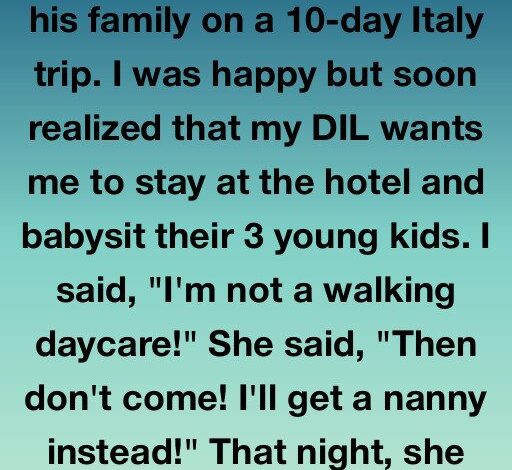 My son invited me on a family trip to Italy — but my daughter-in-law expected me to stay in the hotel babysitting their 3 kids. I told her, “I’m not a walking daycare.” She snapped back, “Then don’t come!”