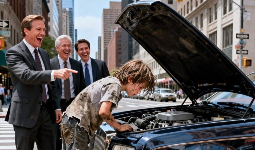 “I can fix it,” the boy whispered, his hands dark with grease as he stared up at the luxury car.