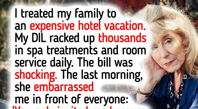 I treated my family to an expensive hotel vacation. My DIL racked up thousands in spa treatments and room service daily. The bill was shocking. The last morning, she embarrassed me in front of everyone: “You only invited me because you feel guilty about how little you do for your son compared to what my parents do for us.”