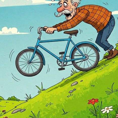 An old man bikes to his brother’s house every weekend, always arriving by 2 PM after a two-hour ride. One day, he tries to do it in one hour. Exhausted on a hill, a man in a Corvette offers help by tying the bike to the bumper.