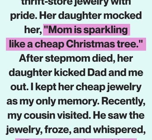 I used to watch my stepmom clip on her thrift-store earrings every morning, standing tall in front of the mirror like they were priceless. She never owned anything fancy, and my stepsister Alicia made sure she never forgot it. “Mom looks like a cheap Christmas tree,” she’d laugh.