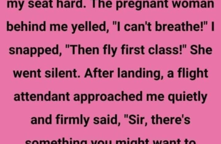 On a crowded flight, a pregnant woman behind me said, “I can’t breathe.” Annoyed, I snapped, “Then fly first class!”