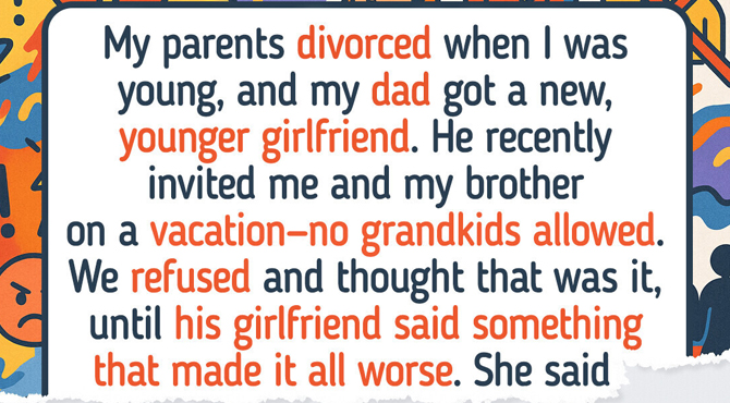 He invited my brother and me on holiday, but said no grandchildren allowed. He said he wanted it to be just adults. My brother was angry. He said that if his children weren’t welcome, then he wouldn’t be either. So we refused and thought that was it.