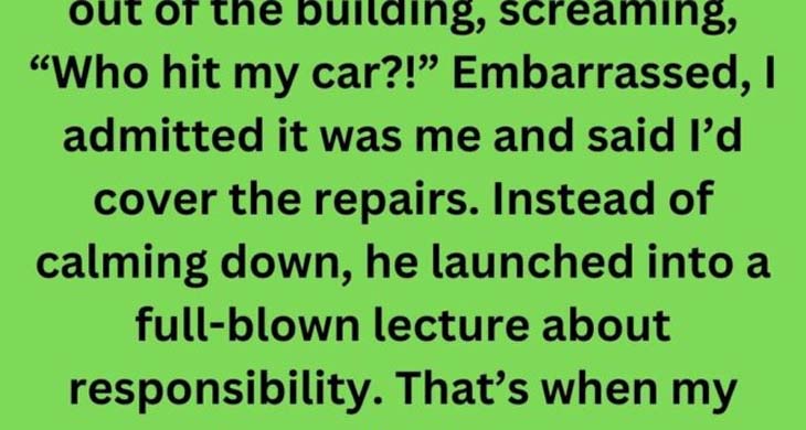 I accidentally scraped a car in the parking lot. My boss came sprinting out of the building, screaming, “Who hit my car?!” Embarrassed, I admitted it was me and said I’d cover the repairs. Instead of calming down, he launched into a full-blown lecture about responsibility.